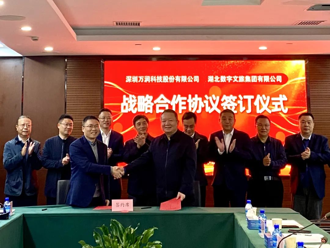 12月14日,湖北數(shù)字文旅集團(tuán)與深圳萬潤(rùn)科技簽訂戰(zhàn)略合作框架協(xié)議。省文化和旅游廳相關(guān)領(lǐng)導(dǎo),湖北文旅集團(tuán)黨委副書記、總經(jīng)理易三平,長(zhǎng)江產(chǎn)業(yè)投資集團(tuán)黨委副書記、總經(jīng)理馬恒出席簽約儀式。數(shù)旅集團(tuán)董事長(zhǎng)張啟駿與深圳萬潤(rùn)科技股份黨委書記、董事長(zhǎng)龔道夷分別代表雙方簽約。