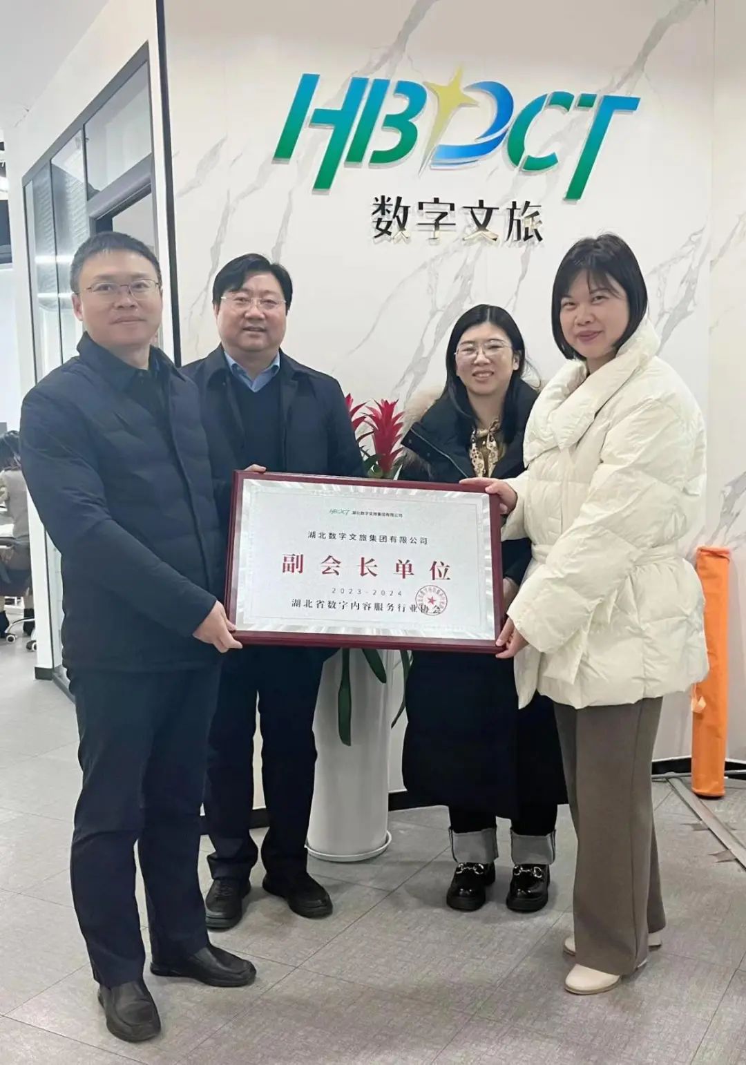 12月20日,湖北省數(shù)字內(nèi)容服務(wù)行業(yè)協(xié)會秘書長一行蒞臨湖北省數(shù)字文旅集團(tuán)(簡稱“數(shù)旅集團(tuán)”)交流,并正式授予數(shù)旅集團(tuán)“湖北省數(shù)字內(nèi)容服務(wù)行業(yè)協(xié)會副會長單位”牌匾。數(shù)旅集團(tuán)董事長張啟駿、副總經(jīng)理陳飛,湖北省數(shù)字內(nèi)容服務(wù)行業(yè)協(xié)會秘書長任婷、副秘書長嚴(yán)曉倩、張卓參加授牌儀式。