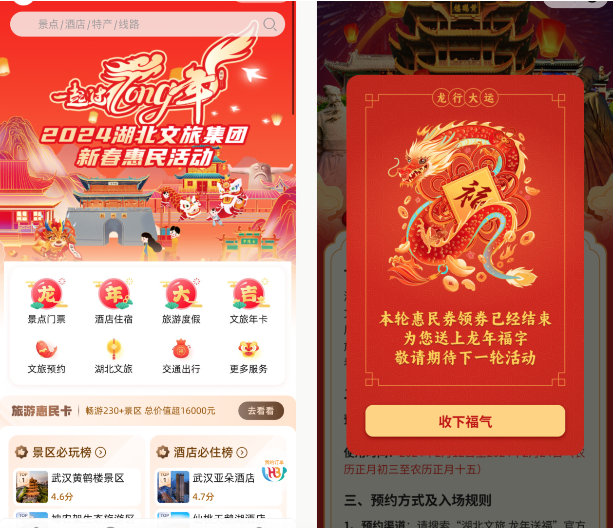 惠民政策積極落實(shí)。為保障湖北文旅“龍年送福”活動工作有序進(jìn)行,數(shù)旅集團(tuán)一卡通公司積極部署,組織技術(shù)研發(fā)、運(yùn)營等工作專班開發(fā)活動平臺,在除夕、大年初一晝夜加班,對接十一個地市州文旅局,數(shù)百家景區(qū)企業(yè),順利完成湖北文旅龍年送福活動60萬張免費(fèi)惠民門票的預(yù)約及核銷工作,并承擔(dān)游客入園等相關(guān)客服、客訴問題處理。