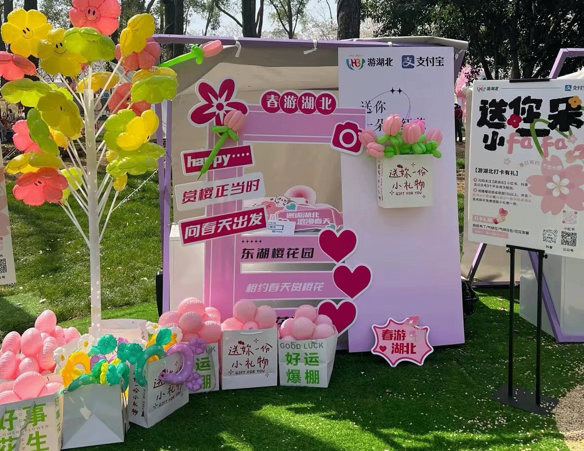 活動(dòng)期間,游湖北打卡點(diǎn)處排隊(duì)參與的人絡(luò)繹不絕。打卡點(diǎn)處精心設(shè)計(jì)了氣球花打卡墻、“送你一朵小紅花”拍照區(qū)及氛圍手持拍照板等,現(xiàn)場(chǎng)還準(zhǔn)備了多重春日好禮。營(yíng)造了好玩、好拍的體驗(yàn)氛圍,展現(xiàn)了游湖北平臺(tái)活動(dòng)的趣味性、互動(dòng)性。