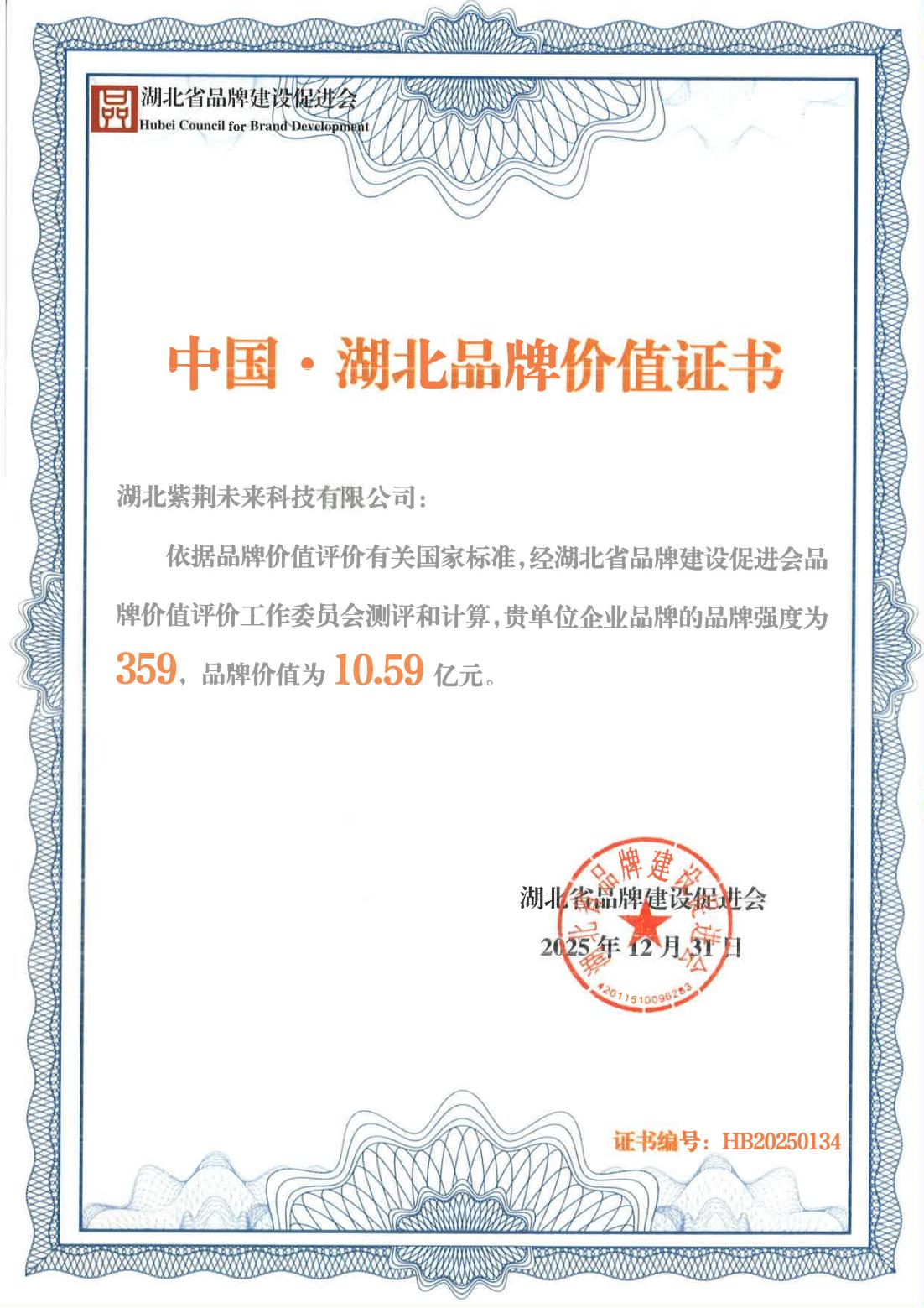 近日,由湖北省發(fā)展和改革委員會、湖北品牌推進(jìn)機(jī)制辦公室聯(lián)合主辦的2026年湖北品牌建設(shè)大會暨湖北品牌年度盛典在武漢召開。會上正式發(fā)布2025年湖北品牌價值評價結(jié)果,數(shù)旅集團(tuán)旗下紫荊未來公司以359的品牌強(qiáng)度獲“中國?湖北品牌價值證書”,品牌價值10.59億元。