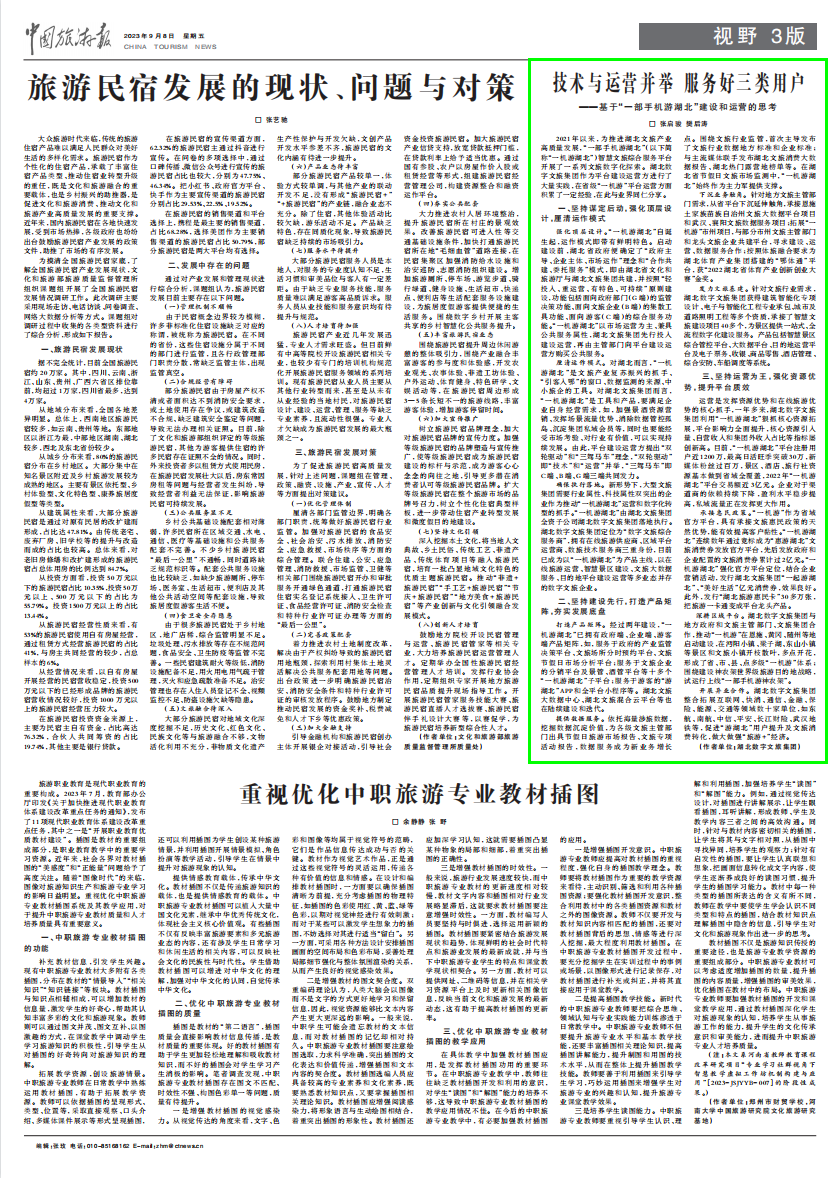 編者按:2023年9月8日,《中國(guó)旅游報(bào)》以《技術(shù)與運(yùn)營(yíng)并舉 服務(wù)好三類用戶——基于“一部手機(jī)游湖北”建設(shè)和運(yùn)營(yíng)的思考》為題,刊發(fā)了湖北數(shù)字文旅集團(tuán)署名文章,現(xiàn)將相關(guān)內(nèi)容轉(zhuǎn)載如下。 □ 張啟駿 樊后濤 2021年以來(lái),為推進(jìn)湖北文旅產(chǎn)業(yè)高質(zhì)量發(fā)展,“一部手機(jī)游湖北”(以下簡(jiǎn)稱“一機(jī)游湖北”)智慧文旅綜合服務(wù)平臺(tái)開(kāi)展了一系列文旅數(shù)字化探索。湖北數(shù)字文旅集團(tuán)作為平臺(tái)建設(shè)運(yùn)營(yíng)方進(jìn)行了大量實(shí)踐,在省級(jí)“一機(jī)游”平臺(tái)運(yùn)營(yíng)方面積累了一定經(jīng)驗(yàn),在此與業(yè)界同仁分享。 一、堅(jiān)持謀定后動(dòng),強(qiáng)化頂層設(shè)計(jì),厘清運(yùn)作模式 強(qiáng)化頂層設(shè)計(jì)。“一機(jī)游湖北”自誕生起,運(yùn)作模式即帶有鮮明特色。啟動(dòng)建設(shè)前,湖北省政府便確定了“政府主導(dǎo)、企業(yè)主體、市場(chǎng)運(yùn)作”理念和“合作共建、委托服務(wù)”模式,即由湖北省文化和旅游廳與湖北文旅集團(tuán)共建,并按照“輕投入、重運(yùn)營(yíng)、有特色、可持續(xù)”原則建設(shè),功能包括面向政府部門(G端)的監(jiān)管決策功能、面向文旅企業(yè)(B端)的集散工具功能、面向游客(C端)的綜合服務(wù)功能。“一機(jī)游湖北”以市場(chǎng)運(yùn)營(yíng)為主、兼具公共服務(wù)屬性,湖北文旅集團(tuán)先行投入建設(shè)運(yùn)營(yíng),再由主管部門向平臺(tái)建設(shè)運(yùn)營(yíng)方購(gòu)買公共服務(wù)。 厘清運(yùn)作模式。對(duì)湖北而言,“一機(jī)游湖北”是文旅產(chǎn)業(yè)復(fù)蘇振興的抓手、“引客入鄂”的窗口、數(shù)據(jù)監(jiān)測(cè)的來(lái)源、中小旅企的工具。對(duì)湖北文旅集團(tuán)而言,“一機(jī)游湖北”是工具和產(chǎn)品,要滿足企業(yè)自身經(jīng)營(yíng)需求,如,加強(qiáng)景酒資源營(yíng)銷、發(fā)揮場(chǎng)景流量?jī)?yōu)勢(shì)、消除數(shù)據(jù)管控孤島、沉淀集團(tuán)私域會(huì)員等,同時(shí)也要能經(jīng)受市場(chǎng)考驗(yàn)、對(duì)行業(yè)有價(jià)值,可以實(shí)現(xiàn)持續(xù)發(fā)展。由此,平臺(tái)建設(shè)運(yùn)營(yíng)方提出“雙輪驅(qū)動(dòng)”和“三駕馬車”理念,“雙輪驅(qū)動(dòng)”即“技術(shù)”和“運(yùn)營(yíng)”并舉,“三駕馬車”即C端、B端、G端三端共同發(fā)力。 確保執(zhí)行落地。新形勢(shì)下,大型文旅集團(tuán)需要行業(yè)屬性、科技屬性雙突出的企業(yè)作為推動(dòng)“一機(jī)游湖北”運(yùn)營(yíng)和數(shù)字化轉(zhuǎn)型的抓手。“一機(jī)游湖北”由湖北文旅集團(tuán)全資子公司湖北數(shù)字文旅集團(tuán)落地執(zhí)行。湖北數(shù)字文旅集團(tuán)定位為“數(shù)字文旅綜合服務(wù)商”,擁有在線旅游供應(yīng)商、區(qū)域平臺(tái)運(yùn)營(yíng)商、數(shù)旅技術(shù)服務(wù)商三重身份,目前已成為以“一機(jī)游湖北”為產(chǎn)品主線,以在線旅游運(yùn)營(yíng)、智慧景區(qū)建設(shè)、文旅大數(shù)據(jù)服務(wù)、目的地平臺(tái)建設(shè)運(yùn)營(yíng)等多業(yè)態(tài)并存的數(shù)字文旅企業(yè)。 二、堅(jiān)持建設(shè)先行,打造產(chǎn)品矩陣,夯實(shí)發(fā)展底盤 打造產(chǎn)品矩陣。經(jīng)過(guò)兩年建設(shè),“一機(jī)游湖北”已擁有政府端、企業(yè)端、游客端產(chǎn)品矩陣,如,服務(wù)于政府的產(chǎn)業(yè)監(jiān)管決策平臺(tái)、文旅場(chǎng)所分時(shí)預(yù)約平臺(tái)、文旅節(jié)假日市場(chǎng)分析平臺(tái);服務(wù)于文旅企業(yè)的分銷平臺(tái)及景管、酒管平臺(tái)等十多個(gè)“一機(jī)游湖北”子平臺(tái);服務(wù)于游客的“游湖北”APP和全平臺(tái)小程序等。湖北文旅大數(shù)據(jù)中心、湖北文旅混合云平臺(tái)等也在陸續(xù)建設(shè)和迭代。 提供數(shù)據(jù)服務(wù)。依托海量涉旅數(shù)據(jù),挖掘數(shù)據(jù)沉淀價(jià)值,為各級(jí)文旅主管部門出具節(jié)假日旅游市場(chǎng)報(bào)告、文旅專項(xiàng)活動(dòng)報(bào)告,數(shù)據(jù)服務(wù)成為新業(yè)務(wù)增長(zhǎng)點(diǎn)。圍繞文旅行業(yè)監(jiān)管,首次主導(dǎo)發(fā)布了文旅行業(yè)數(shù)據(jù)地方標(biāo)準(zhǔn)和企業(yè)標(biāo)準(zhǔn);與主流媒體聯(lián)手發(fā)布湖北文旅消費(fèi)大數(shù)據(jù)報(bào)告、湖北熱門露營(yíng)地榜單等。在湖北省節(jié)假日文旅市場(chǎng)監(jiān)測(cè)中,“一機(jī)游湖北”始終作為主力軍提供支撐。 下沉業(yè)務(wù)觸角。針對(duì)地方文旅主管部門需求,從省平臺(tái)下沉延伸觸角,承接恩施土家族苗族自治州文旅大數(shù)據(jù)平臺(tái)項(xiàng)目和武漢、襄陽(yáng)文旅數(shù)據(jù)服務(wù)項(xiàng)目;拓展“一機(jī)游”市州項(xiàng)目,與部分市州文旅主管部門和龍頭文旅企業(yè)共建平臺(tái),尋求建設(shè)、運(yùn)營(yíng)、數(shù)據(jù)服務(wù)合作;按照體旅融合要求為湖北體育產(chǎn)業(yè)集團(tuán)搭建的“鄂體通”平臺(tái),獲“2022湖北省體育產(chǎn)業(yè)創(chuàng)新創(chuàng)業(yè)大賽”金