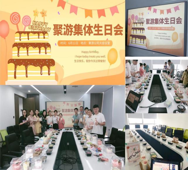 6月11日下午,濃情仲夏,炎之將至。聚游科技公組織開展活動,為1到6月份生日的員工舉辦了集體生日會,這是公司為豐富員工的精神文化生活,活躍工作氛圍特別舉辦的別開生面的生日會,同時也展現(xiàn)了公司底蘊深厚的企業(yè)文化和人文關(guān)懷。下午,公司大會議室里熱鬧非凡,二十多份蛋糕、奶茶、水果拼盤、成箱的零食大滿貫,讓人眼花繚亂,迫不及待。集體生日會上,會場布置簡單而不失隆重,充滿溫馨。二十多位員工的照片一一展現(xiàn)在PPT投屏上,小小的生日會,讓員工們在忙碌生活中收獲一份“小確幸”,也讓大家的心凝聚在一起,豐富了聚游科技公司“家文化”的內(nèi)涵。