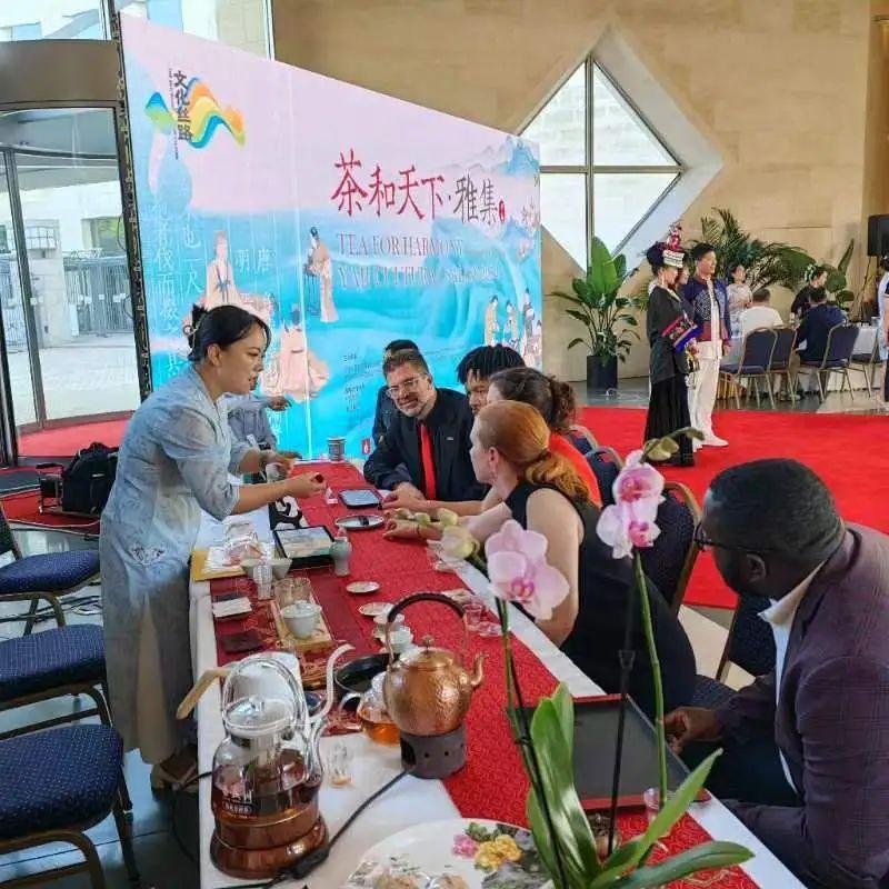 “茶和天下”·雅集活動(dòng)走進(jìn)美國(guó)華盛頓、紐約。5月21日“國(guó)際茶日”當(dāng)天,由湖北省文化和旅游廳與中國(guó)駐美國(guó)大使館聯(lián)合舉辦的2024年度“茶和天下”•雅集活動(dòng)在華盛頓中國(guó)駐美國(guó)大使館內(nèi)成功舉辦。中國(guó)駐美國(guó)大使館公使井泉、湖北省文化和旅游廳二級(jí)巡視員孫旭出席活動(dòng)并致辭,20多個(gè)國(guó)家駐美國(guó)的大使、公使、參贊,以及美國(guó)政治、經(jīng)濟(jì)、文化、旅游等各界的來賓200余人出席活動(dòng),近距離感受了博大精深的中國(guó)茶文化,體驗(yàn)了荊風(fēng)楚韻的獨(dú)特魅力。