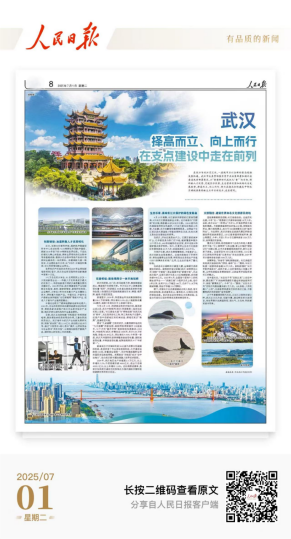 《人民日報》整版報道武漢發(fā)展成就。2024年武漢GDP超2.1萬億元,增長5.2%,外貿規(guī)模突破4000億元。武漢加速轉化科教人才優(yōu)勢,全球創(chuàng)新集群排名第13位,籌建產業(yè)創(chuàng)新聯(lián)合實驗室。交通樞紐建設方面,陽邏港集裝箱吞吐量238.1萬標準箱,中歐班列發(fā)運1008列,天河機場多項指標居中部第一。生態(tài)治理成效顯著,長江武漢段水質連續(xù)5年Ⅱ類,“武碳江湖”用戶達160萬。文旅融合方面,黃鶴樓、東湖等景區(qū)吸引大量游客,“光谷光子號”空軌成新地標。武漢市擇高而立,在支點建設中走在前列。