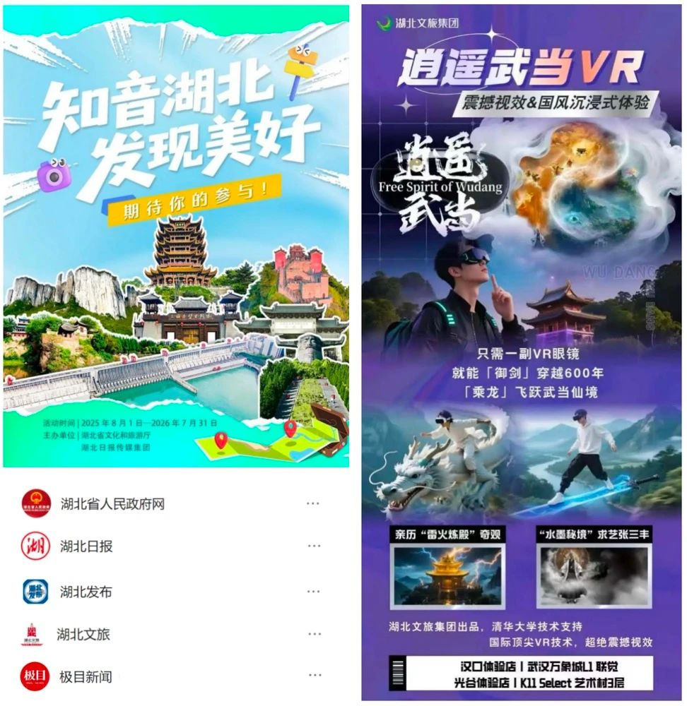 “知音湖北”攜手“逍遙武當”共繪數(shù)字荊楚新畫卷。近期,“知音湖北 發(fā)現(xiàn)美好”全媒體征集活動正式啟動。數(shù)旅集團“逍遙武當”VR沉浸體驗作為官方指定禮品,將武當山72峰、36巖、24澗、九宮八觀以LBE大空間技術高仿真復刻,動捕、光影、音效三維一體,讓游客在城市商圈即可沉浸式領略武當神韻。項目6月亮相武漢萬象城、光谷K11,即登頂大眾點評、美團、抖音區(qū)域VR人氣榜,下一步將以授權模式走向全國,持續(xù)講好湖北故事,傳播荊楚文化。